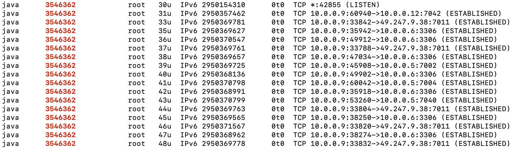 - *:42855 : 해당 프로세스는 42855로 외부 접속을 대기하고 있다.