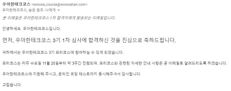 발표 15분 전부터 떨려서 아무것도 못했습니다. 2분 남겼을 때는 구글 메일 앱을 새로고침 하면서 메일을 기다렸고, 예정되었던 3시 정각에 바로, 합격 메일을 받을 수 있었습니다.