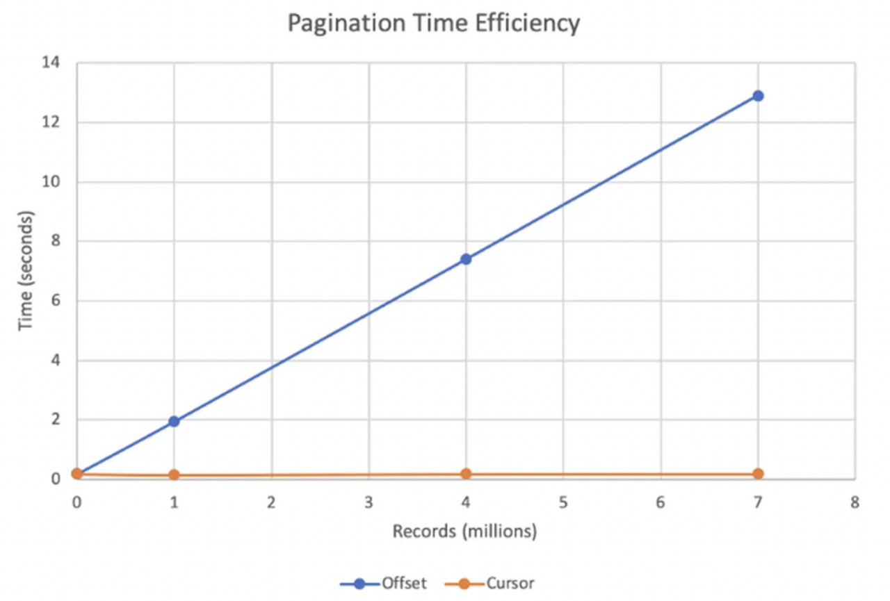 이렇게까지 큰 차이를 보이는 이유는 OFFSET 동작 방식 때문이다. Mysql 의 OFFSET 은 그저 페이지까지의 전부를 읽고 필요한 부분의 이전 데이터는 버리는 식으로 동작한다. 페이지가 커지면 커질 수록 조회해야 하는 데이터는 점점 많아지고 느린 응답을 받게 되는 것이다.