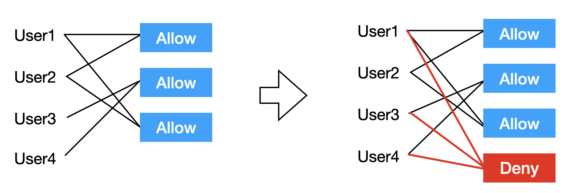 이런 상황이 흔할 것이라고 생각한다. 나는 'Deny가 Allow보다 우선 순위가 높다'는 점을 이용하여 문제를 풀이했다. User나 Group에 Deny 정책으로 태그 조건을 추가하여 적용하면 기존 User Allow 정책들이나 User가 속해있는 Group의 Allow 정책을 변경하지 않고 태그 조건을 강제할 수 있게 된다. 내 경우에는 'TagRestrictionPolicy'라는 제한 정책을 만들어 이미 존재하는 사용자 그룹에 추가하거나, 'TagRestrictionGroup'이라는 새로운 UserGroup을 만들고 태그 제한 정책이 포함되어야 하는 User를 이 그룹에 추가하는 것으로 기존의 시스템을 더럽히지 않고 작업할 수 있었다.