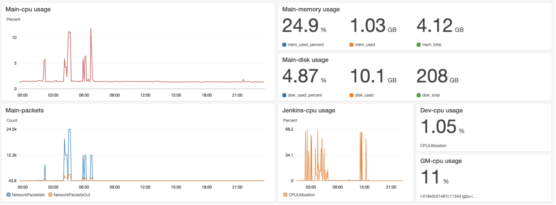 AWS Cloudwatch로 인스턴스 상태를 확인, 관리할 수 있다. CloudWatch에서 기본적으로 제공하는 cpu 사용률, 네트워크 패킷 수 외에도, 다음을 따라 Cloudwatch agent를 이용하면 해당 인스턴스의 메모리와 디스크 사용률까지도 확인할 수 있다.