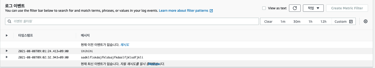 (로그 그룹명, 로그 스트림명은 자유롭게 하시되 기억해주세요. 3번에서 사용됩니다.)