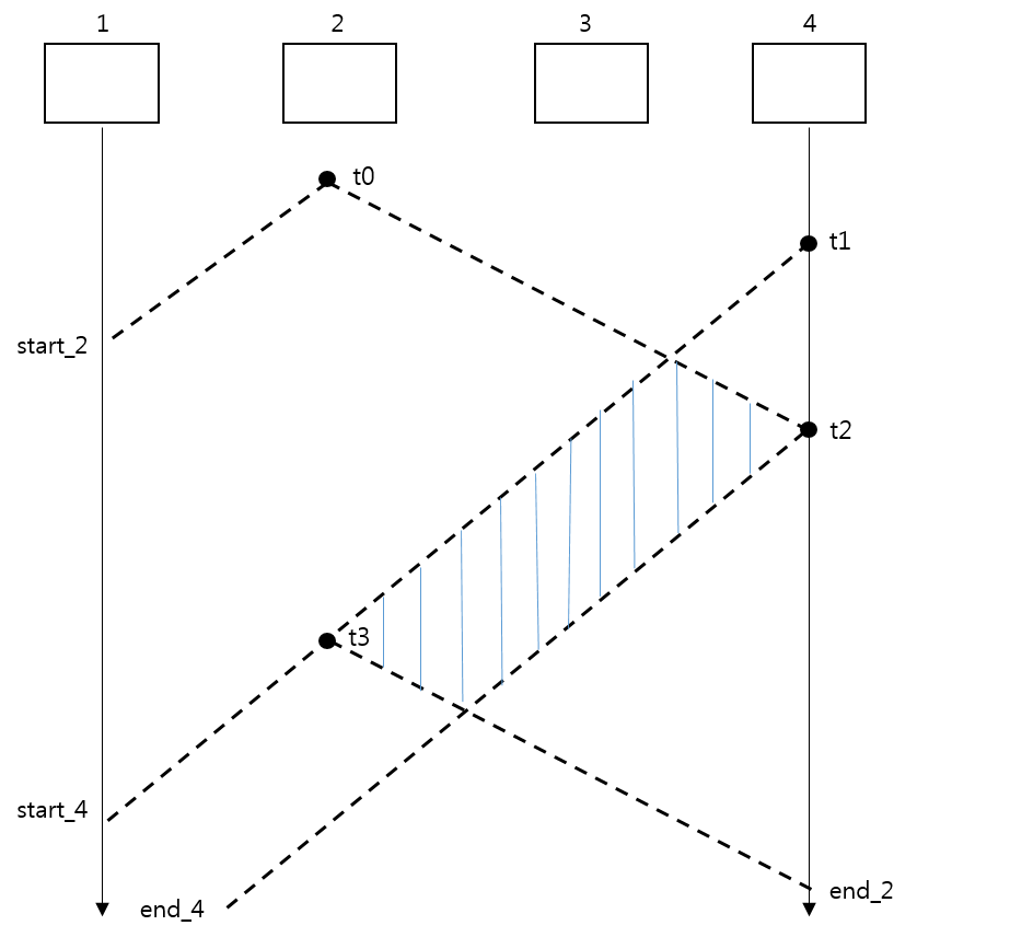 - PC 2와 PC 4 가 t2, t3 처럼 다른 frame을 확인하면 충돌을 확인하고 그 이상 신호를 전송하지 않는다.