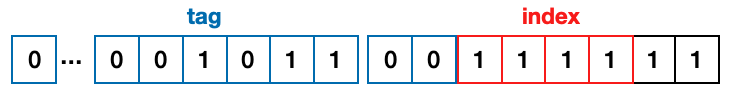 이때 같은 인덱스 값을 갖는 다른 주소 B가 읽기 요청을 했다고 가정해보자. B의 데이터를 캐시의 인덱스 1111의 데이터 값으로 해도 될까? A는 그 값이 32이고, B는 0으로 서로 다른 값이니 캐시 라인 1111의 데이터를 믿어선 안된다. 즉 캐시에 B의 데이터는 없는 것이다. 이를 구별하기 위한 값이 또 필요하다. index와 마찬가지로 주소의 일부분을 값으로 인덱스 라인에 해당하는 캐시 값이 엑세스 주소의 데이터가 맞는지 구분한다. 이를 tag값이라고 한다.