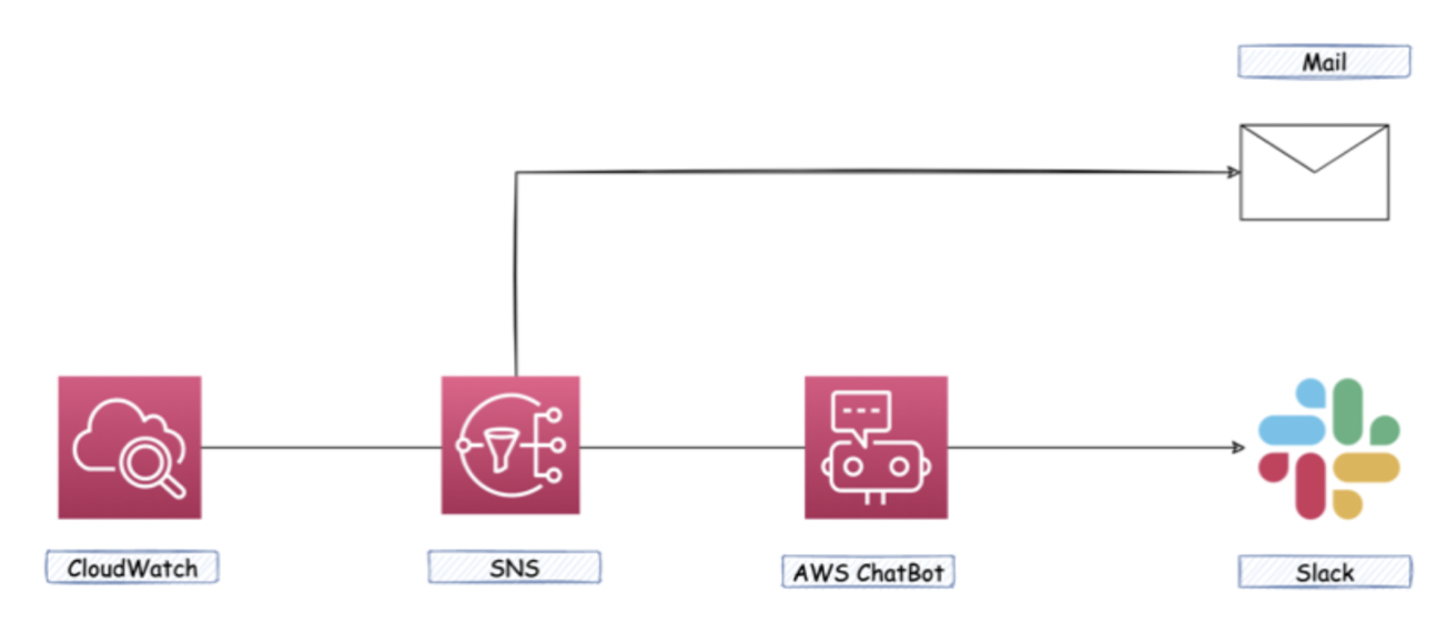 이렇게 수집한 metric으로 cloudwathc에서 알람을 만들 수 있고, 그걸 트리거해 slack과 메일로 전송하는 알람 플로우를 만든다. 전송 주체를 AWS chatbot이나 Lambda를 사용할 수 있다.