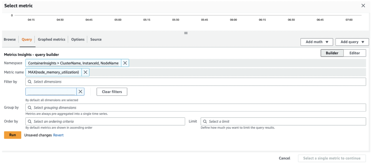 이제 Cloudwatch metirc으로 EKS Container Insights를 선택할 수 있다.