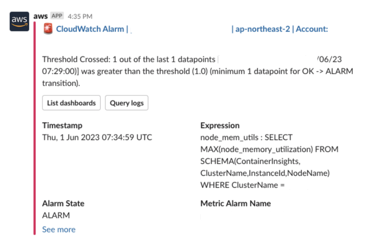 EKS 모니터링, Cloudwatch 세팅부터 slack 알람까지 본문