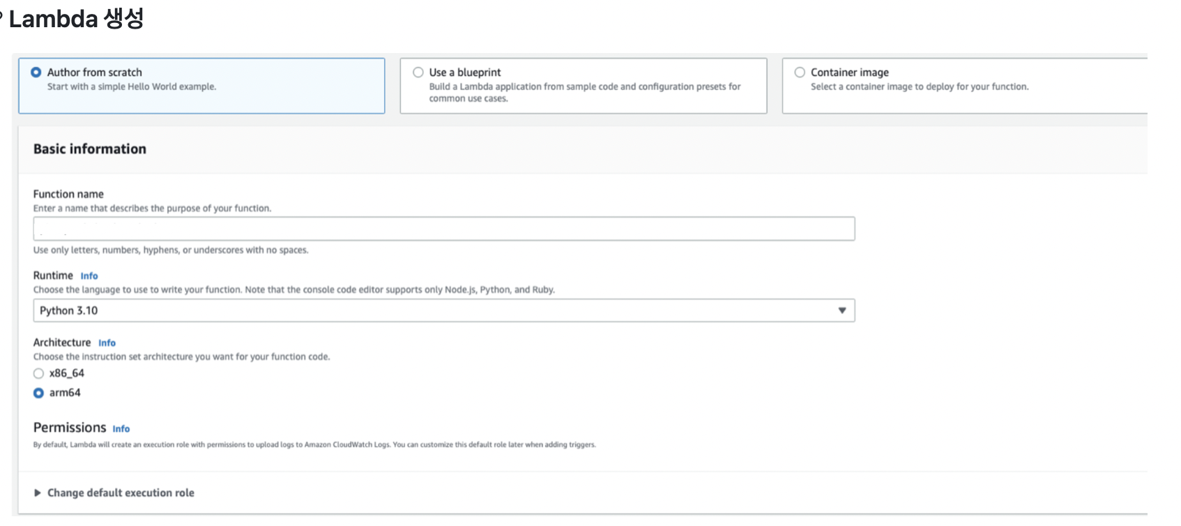 Runtime을 python 3.10으로 잡고 아래 lambda_function.py를 code source로 정의한다. 슬랙 webhook URL은 슬랙의 webhook plugin 을 설정하여 얻는다.