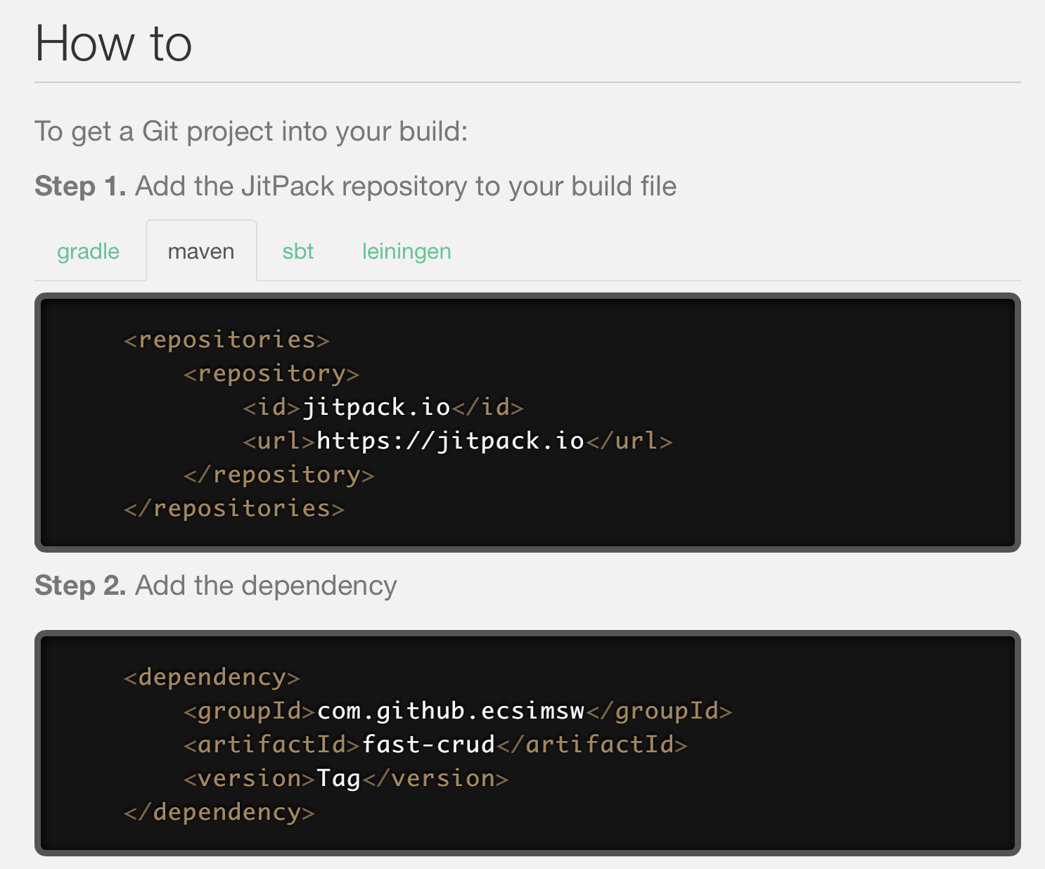 implementation 'com.github.ecsimsw:fast-crud:0.0.1'