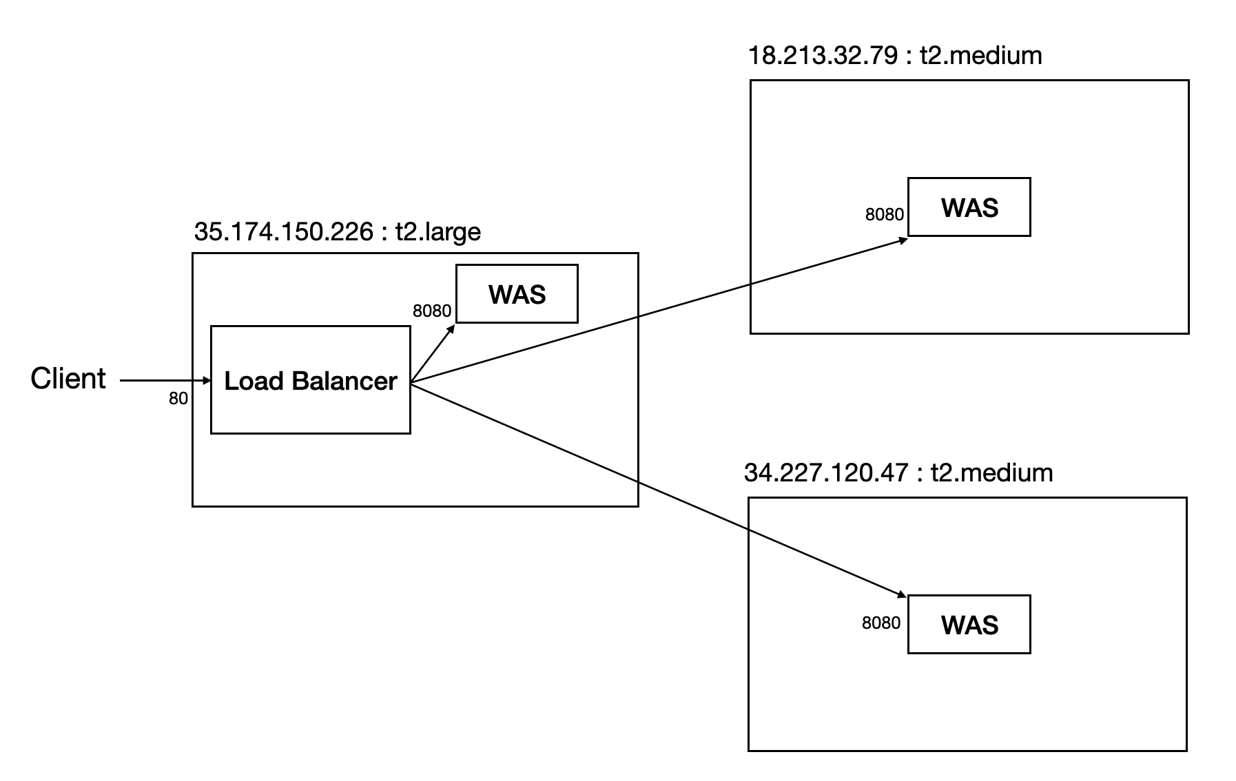 - Nginx를 로드밸런서로 설정하여 3개의 WAS에 요청을 분산한다.
