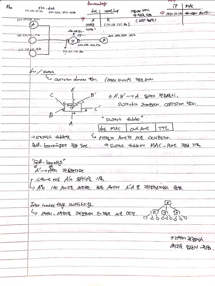 - forwarding table은 routing algorithm으로 table을 세팅했다면, switch table은 self learning 방식으로 정보를 입력한다.