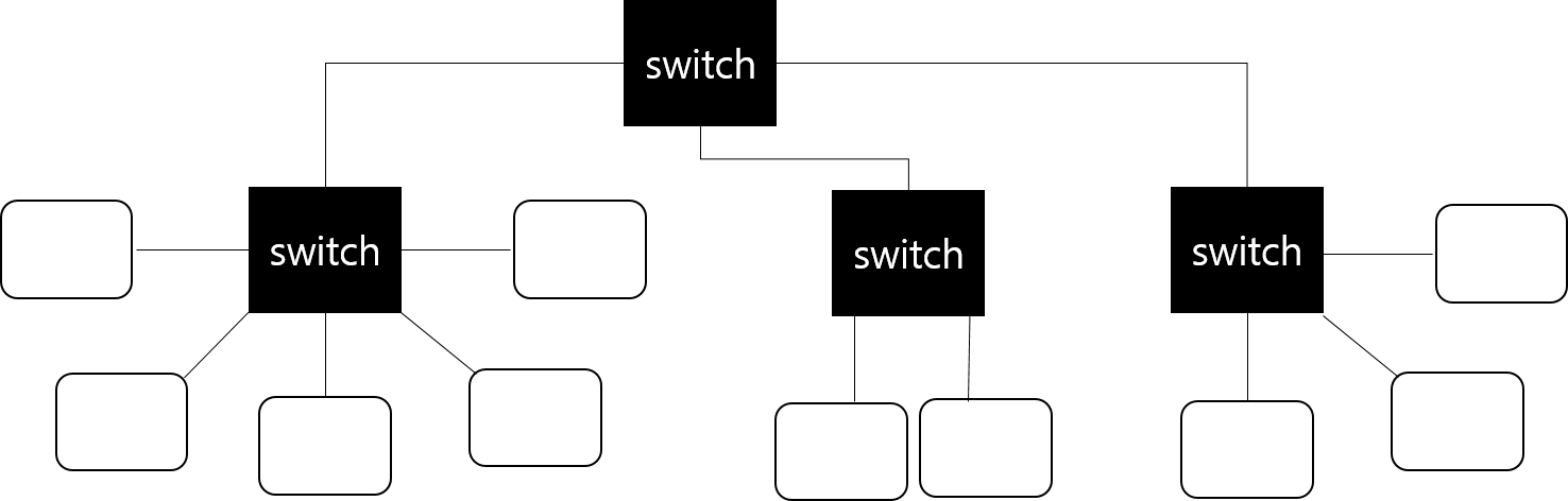 - 스위치에 또 다른 스위치를 연결하여 더 많은 pc를 연결하고, 계층화 한다.