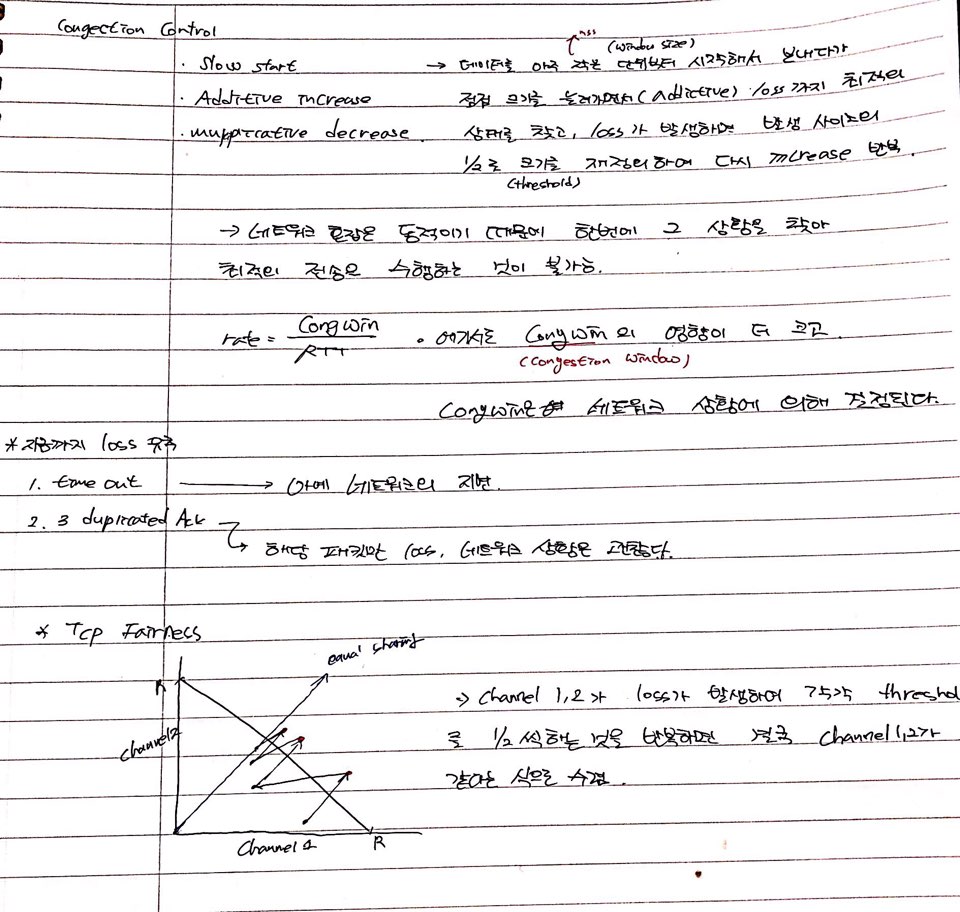 수신 측의 처리 속도에 따라 송신 속도를 제어하는 서비스가 flow control이라면, congestion control은 네트워크 상황에 따라 송신 속도를 제어한다.