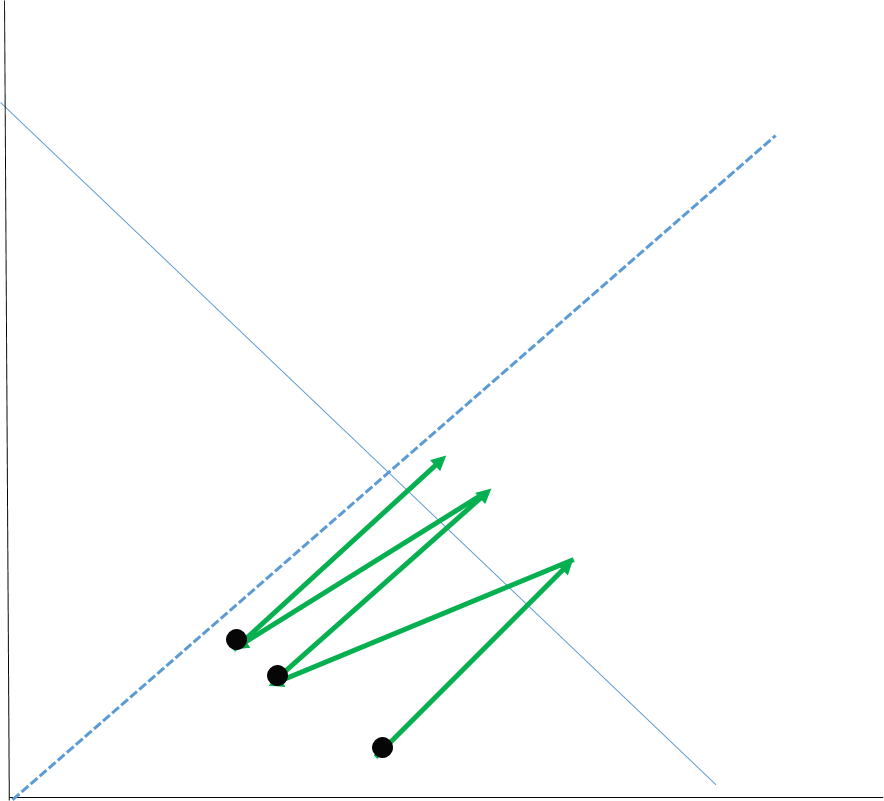 여러 채널이 한 네트워크를 사용한다면 사용하는 자원은 공평하게 분배된다. 위 congestion control을 따르면 여러 채널이 사용해도 자원은 공평하게 분배되어 최적으로 사용된다. 두 채널이 서로 다른 초기 윈도우 사이즈를 갖고 한 네트워크를 사용할 때를 예시로 공평한지 확인한다.