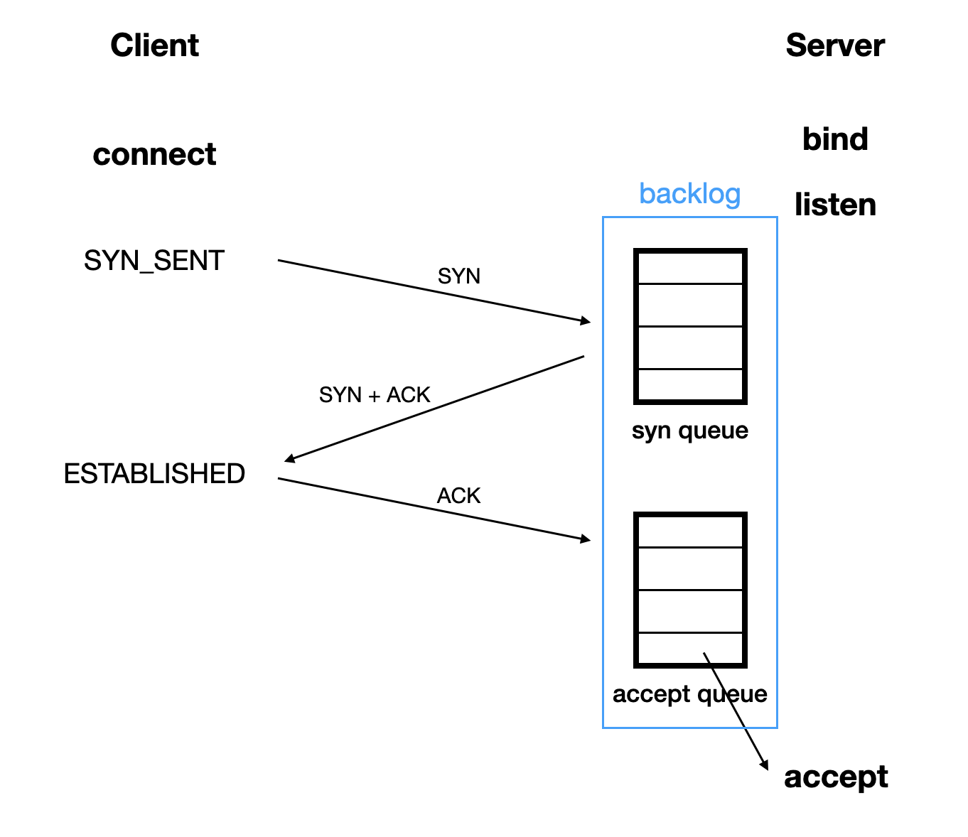 그리고 이렇게 ACK 패킷을 전달받은 요청이 완료된 연결을 accept_queue에 저장하고, 서버에서 accept가 가능해질 경우, accept_queue에서 연결을 꺼내와 전달하는 것이다.