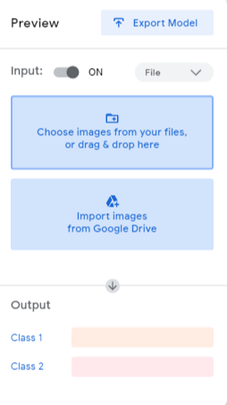 Preview에서 마찬가지로 데이터를 넣어 시험해볼 수 있고, Export Model을 통해, javascript 코드나 Model 파일을 추출할 수 도 있다.