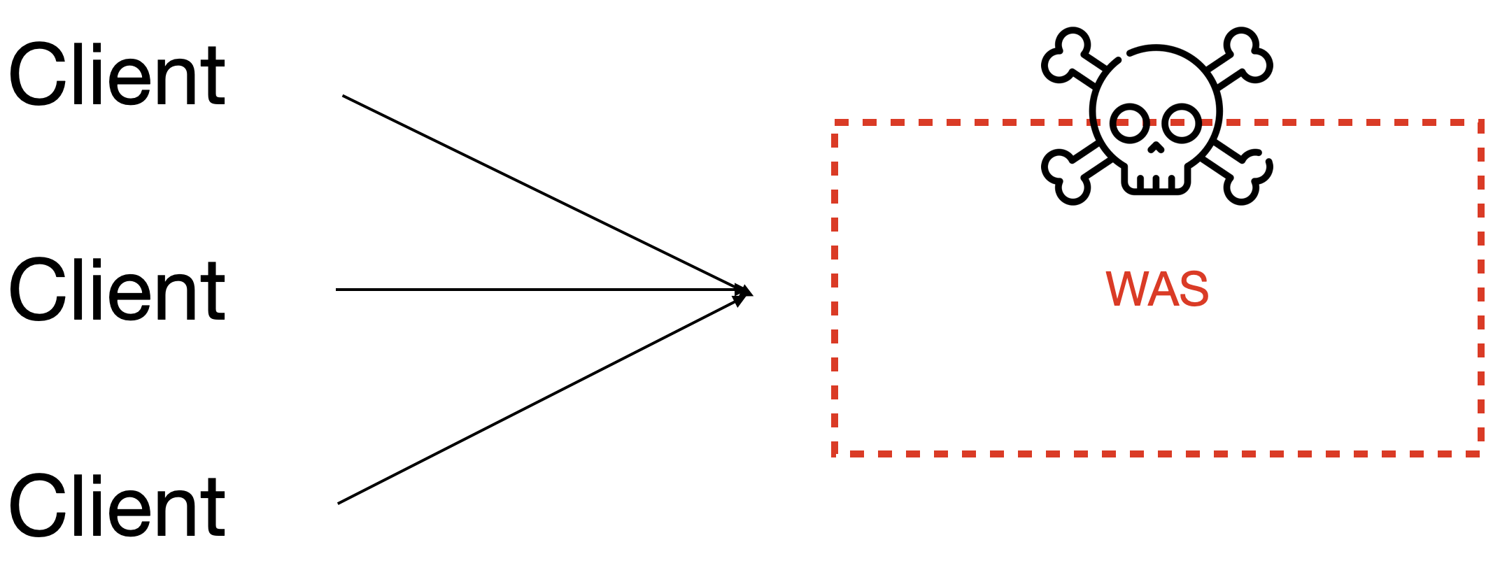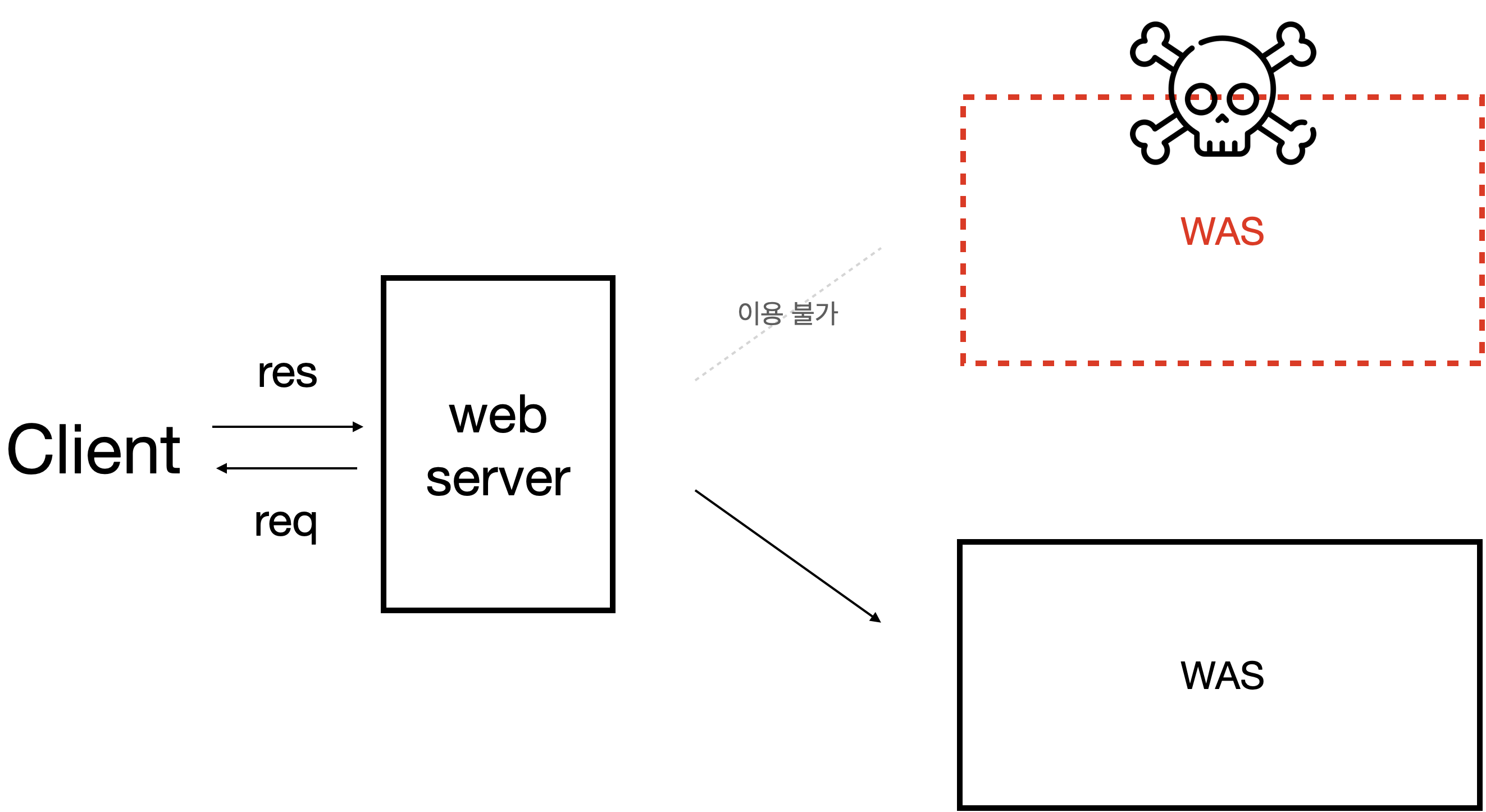 만약 web server 없이 한 대의 WAS로만 요청을 처리한다면 많은 요청이 동시에 몰렸을 경우 어떻게 될까. 하드웨어의 한계를 넘어버려 서버가 다운될 것이다.